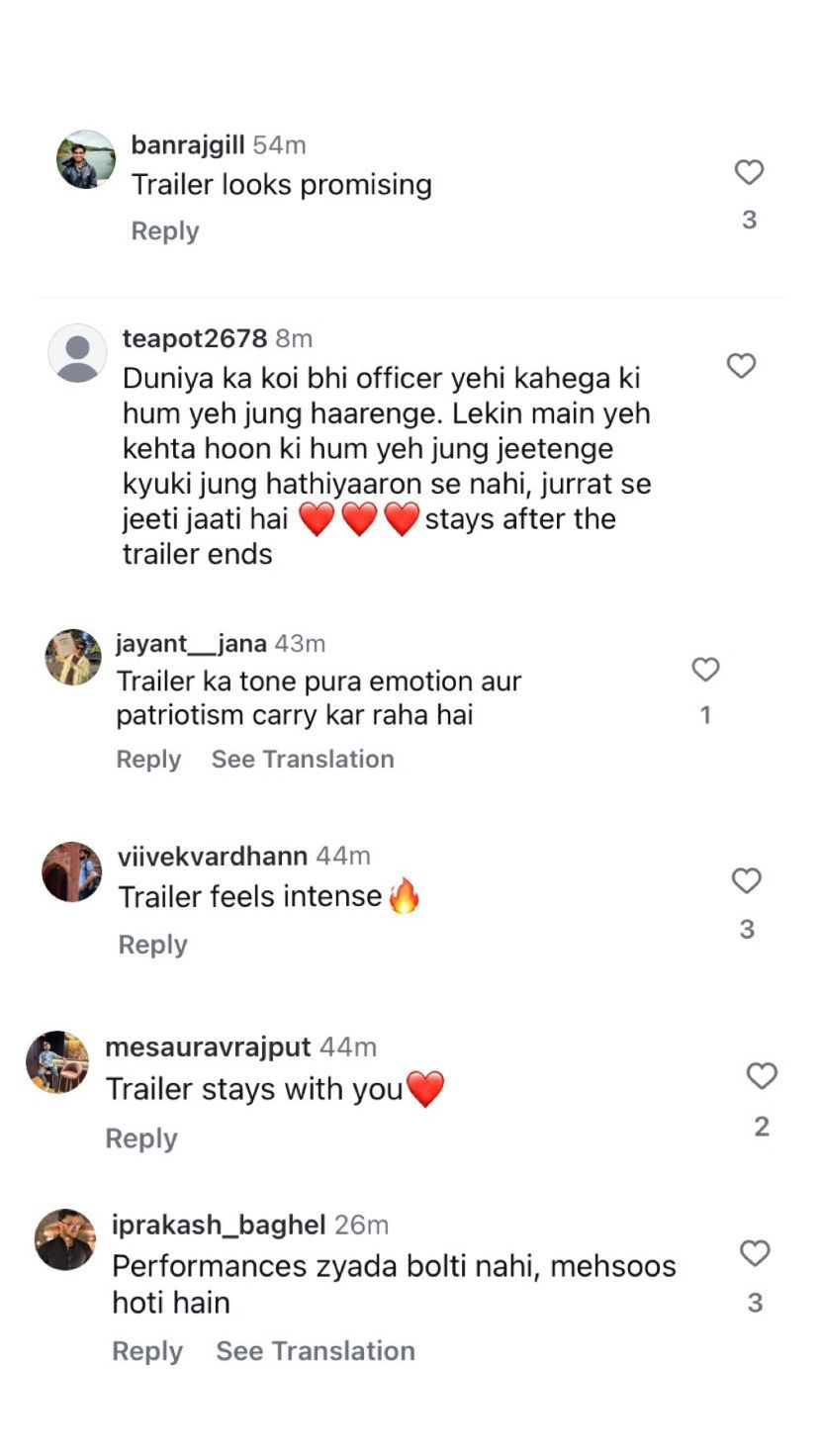 Industry insiders and celebrities have taken to their platforms to share their reactions, praising the scale, emotion, and impact of the trailer. Filmmakers, actors, and celebrities including *Karan Johar, K L Rahul, Suniel Shetty, Athiya Shetty, Bobby Deol, Ameesha Patel, Manish Malhotra, Ramesh Taurani, Milap Zaveri, amongst host of others* shared their excitement by taking to their Instagram stories and commenting on the casts’ posts, applauding the film’s powerful tone and its tribute to courage and sacrifice.