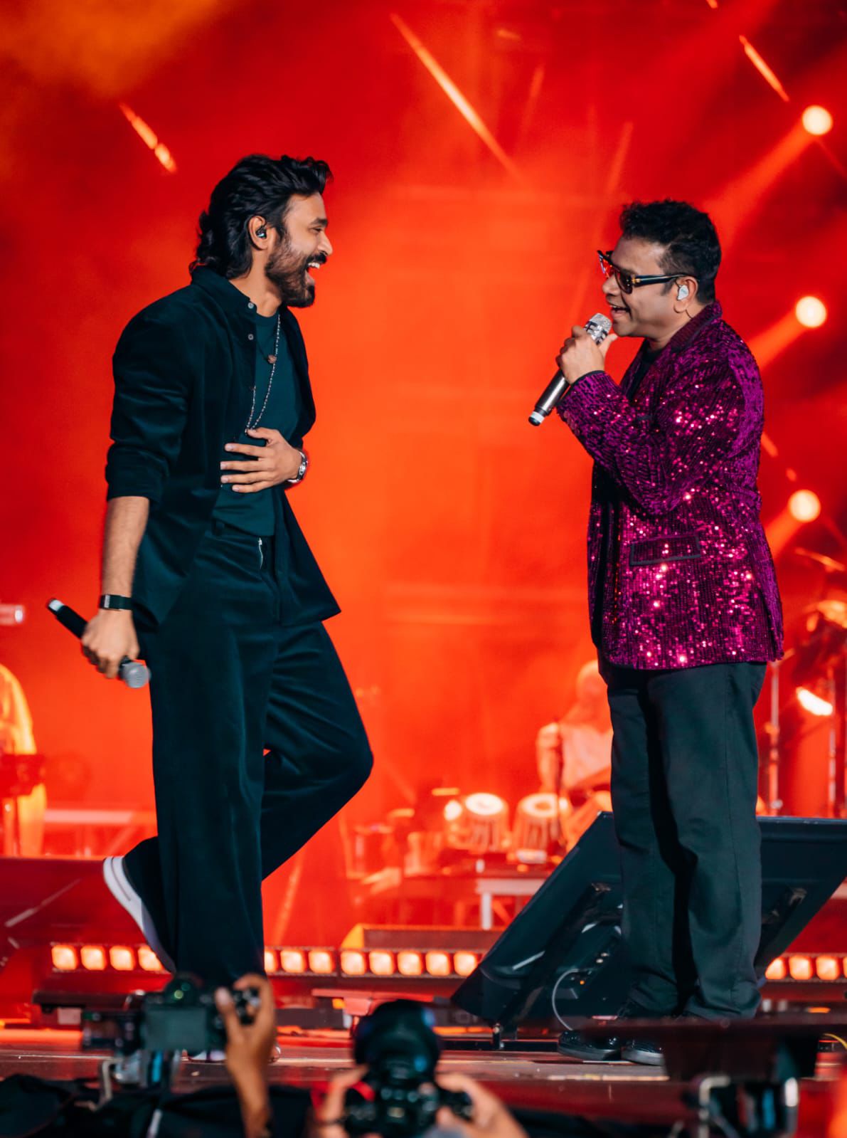 One of the biggest highlights of the night was the surprise appearance by Dhanush, who joined Rahman on stage for a powerful rendition of “Adanghata Asuran” from Raayan. The composer-actor duo set the stage ablaze, sending fans into a frenzy and adding an electrifying twist to the evening. The excitement continued as Anupamaa took to the stage to perform her iconic track “Chandralekha,” captivating the crowd with her dynamic presence. Legendary singer Srinivas added a touch of nostalgia with his soulful performance of “Minsara Kanna,” drawing thunderous applause from fans. Rahman further enthralled the audience with stirring renditions of “Dil Se Re” from Dil Se.. and the spiritual favourite “Kun Faya Kun” from Rockstar. Adding youthful energy to the night, Ameen impressed fans with a live performance of his recent hit “Bheegi Bheegi,” among several other soulful and powerful numbers that made the concert an unforgettable musical celebration.