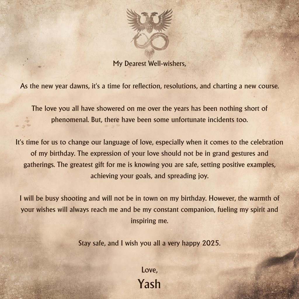 Rocking Star Yash appeals to fans to prioritise safety and mindfulness in a heartfelt letter ahead of his birthday