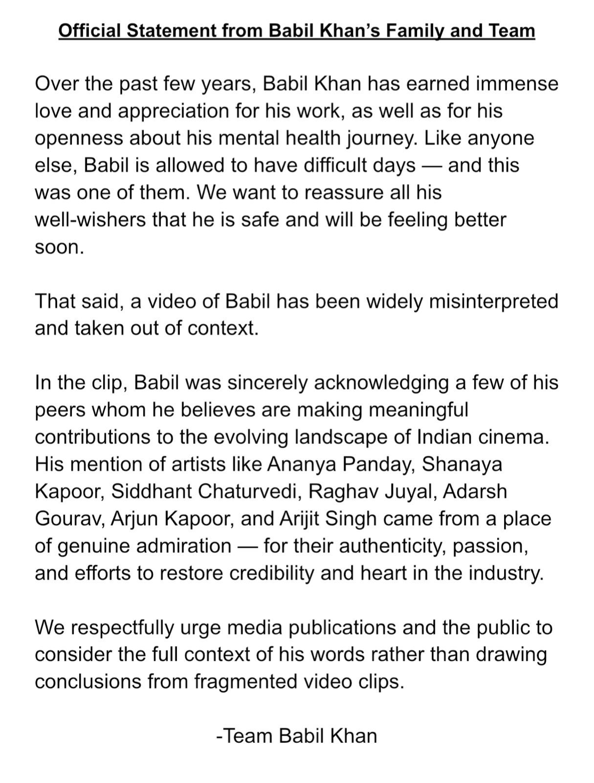 Over the past few years, Babil Khan has earned immense love and appreciation for his work, as well as for his openness about his mental health journey. Like anyone else, Babil is allowed to have difficult days — and this was one of them. We want to reassure all his well-wishers that he is safe and will be feeling better soon.