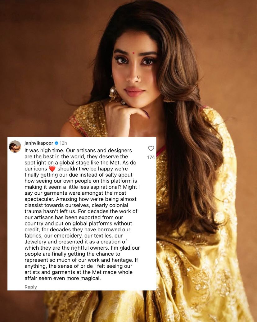 “_It was high time. Our artisans and designers are the best in the world. They deserve the spotlight on a global stage like the Met. As do our icons_,” Janhvi wrote, emphasizing the significance of Indian representation at such prestigious events.