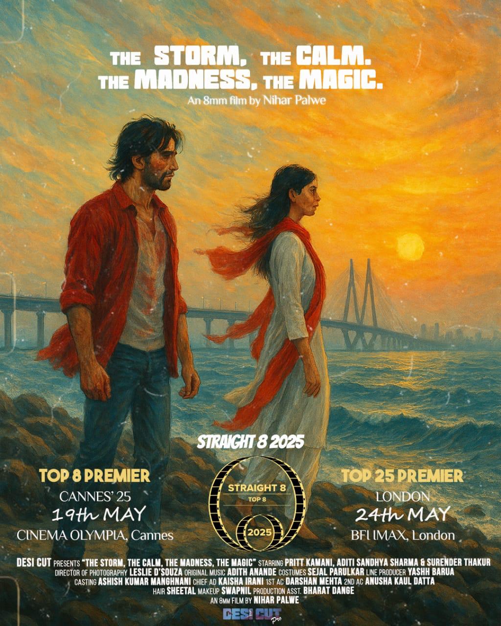 “The Storm, The Calm, The Madness, The Magic” becomes the first Indian film ever selected in the Straight 8 Top 8, set to premiere at Cannes 2025. Mumbai / London / Cannes – May 2025 Indian 8mm film “The Storm, The Calm, The Madness, The Magic,” written & directed by Nihar Palwe, has been officially selected as one of the Top 8 films globally in the prestigious Straight 8 competition. The film will have its Cannes Premiere during the Cannes Film Festival on May 19, 2025 at Cinema Olympia, Cannes followed by its World Premiere at BFI IMAX in London on May 24. Straight 8 is a legendary UK based filmmaking challenge where participants must shoot a film on a single Super 8mm cartridge, edited entirely in-camera, with sound submitted blind. No post-production, no retakes, just pure, instinctive storytelling. Out of hundreds of entries from around the world, only the top 8 are selected for premiere at Cannes. This marks the first time in over 25 years of the competition that an Indian film has ever made it to Straight 8’s Top 8 since its inception, breaking new ground for Indian filmmakers in the experimental, analog space.