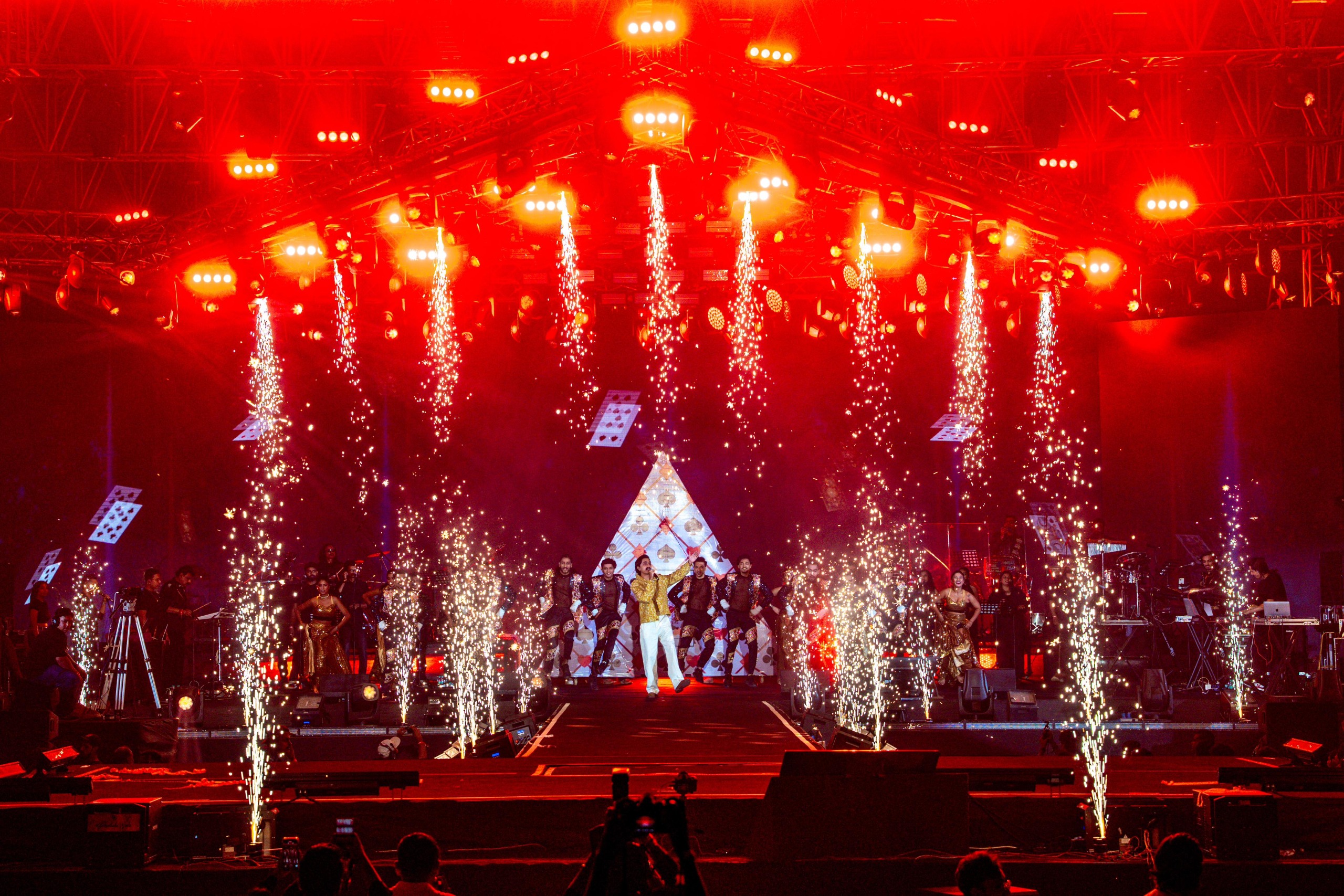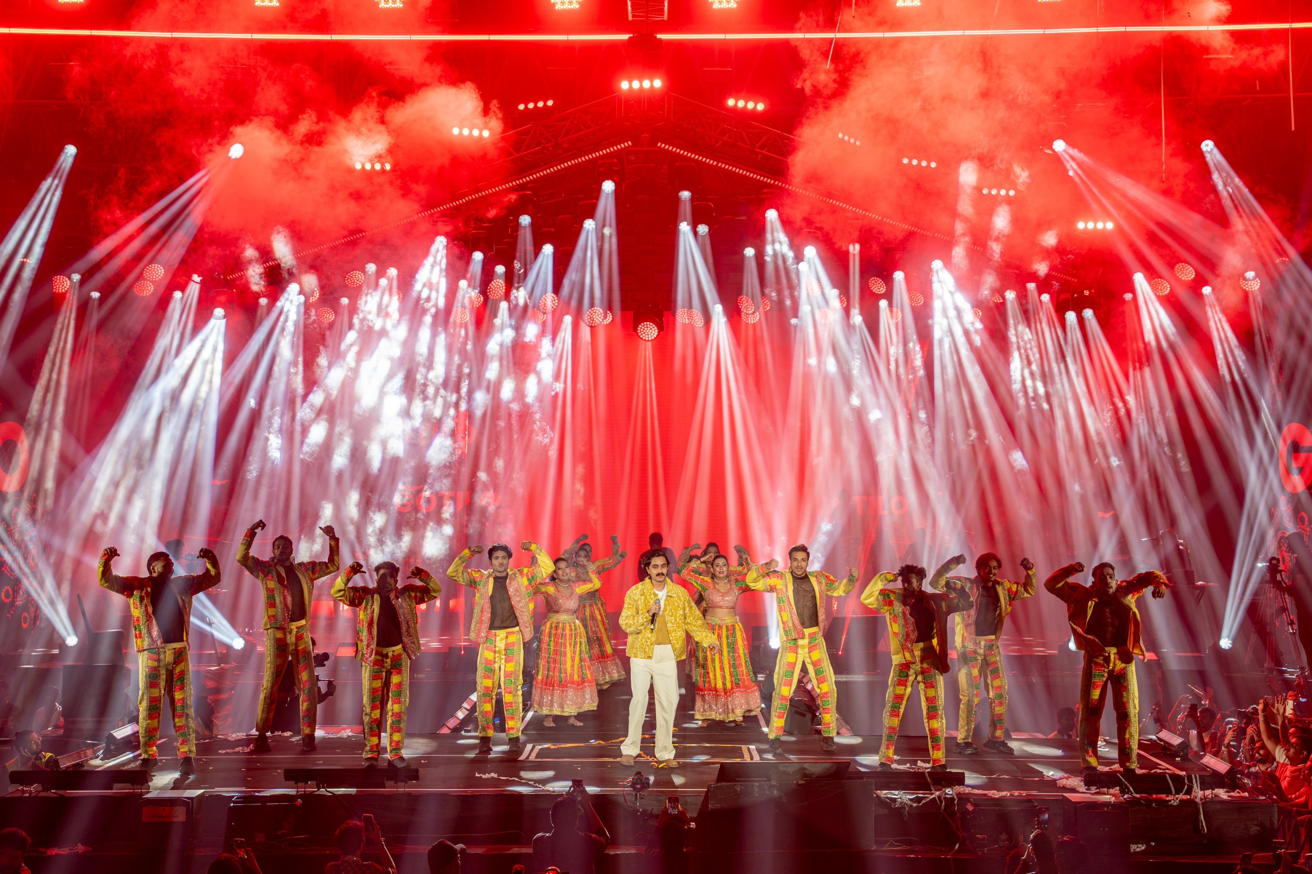 Opening the night with a fan favorite – ‘Sapna Vinani Raat’, Gadhvi set the energy for a stellar showcase. Bringing his legion of folk and contemporary dancers on stage for ‘Vitthal Vitthal’, ‘Shivaji Nu Halardu’ and ‘Naagar Nandji Na Laal’, he transformed the entire venue into a vibrant Garba dance floor! Elevated with stunning visual effects, snow bubbles, flames, and a sea of synchronized Xylobands in the crowd, fans couldn’t help but immerse themselves in a moment of pure euphoria. As the first notes of ‘Khalasi’ started, the crowd went berserk, ready to sing along to the folk anthem song! The night ended with Gadhvi’s power performances on songs like ‘Laadki’, ‘Rang Bhini’, and  ‘Mahahetvali’.  Aditya Gadhvi’s close friend, singer-songwriter Darshan Raval was also spotted in the crowd singing along.