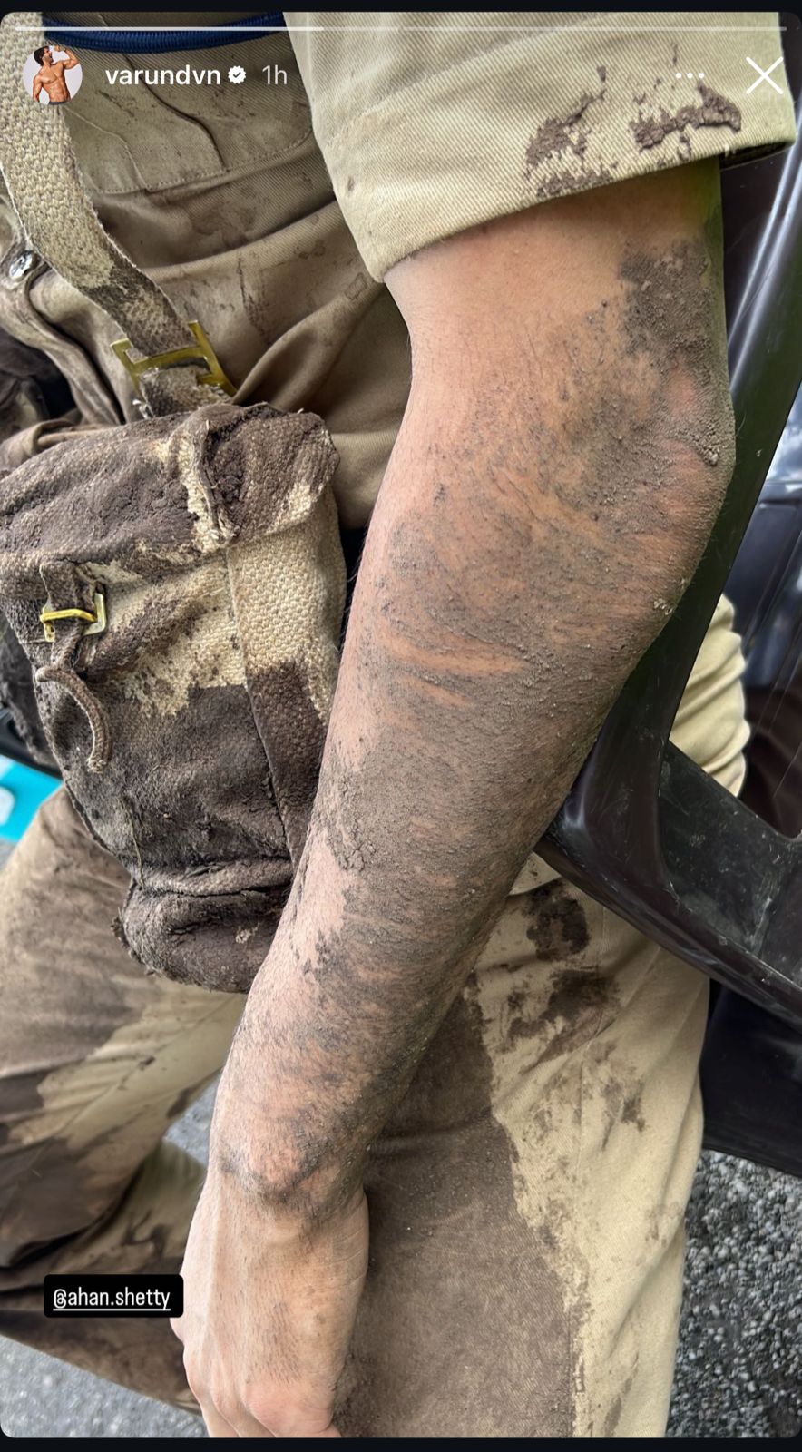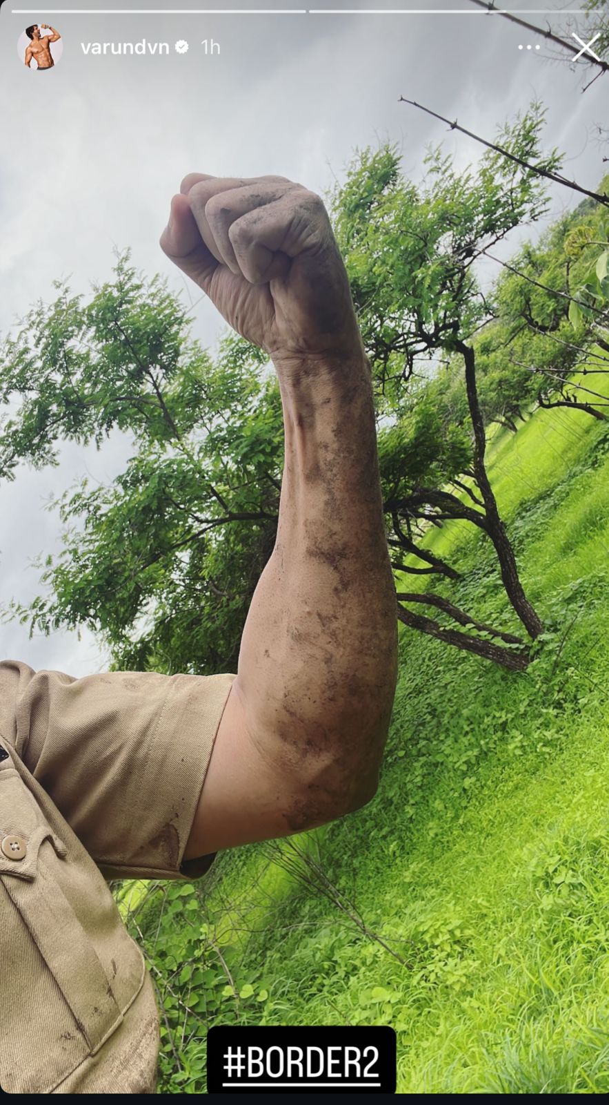The patriotic fervour intensifies as Border 2 resumes its shooting schedule in Pune. Varun Dhawan, who stars in the much-anticipated sequel, took to Instagram to share a gritty behind-the-scenes glimpse from the sets. One photo featured co-star Ahan Shetty’s hand caked in mud , a striking symbol of the raw, real portrayal of soldiers at the border. Varun also shared a similar image of his own hand covered in mud, offering fans a powerful peek into the film’s immersive world of patriotism and sacrifice.